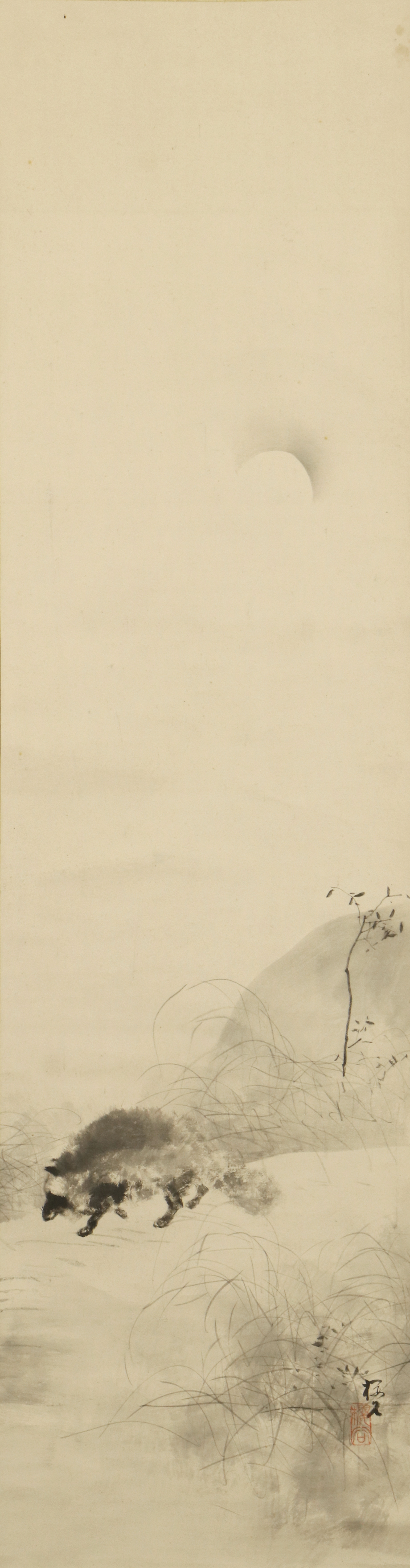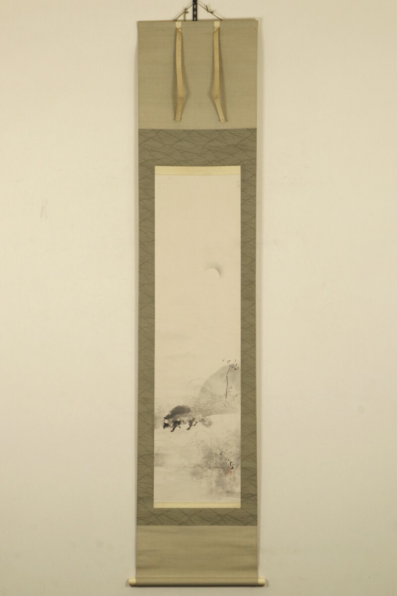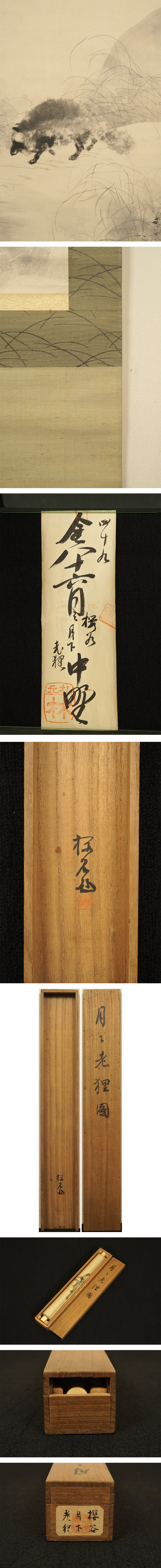 - 【真作 落札有】掛軸「木島桜谷 月下老狸図」共箱 今尾景年門下 最後の四条派 櫻谷文庫 動物画 絵画
