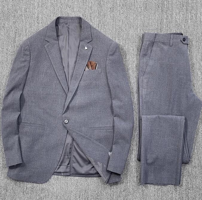 - 新入荷 メンズ スーツセット ウール混 ビジネスフォーマル チェック柄 春 スーツ上下セット 長ズボングレー お色選択可