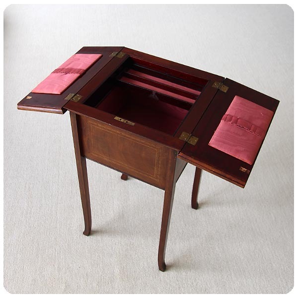 - イギリス アンティーク ソーイングボックス 裁縫箱 マホガニー インテリア レア 家具 店舗什器 K-377