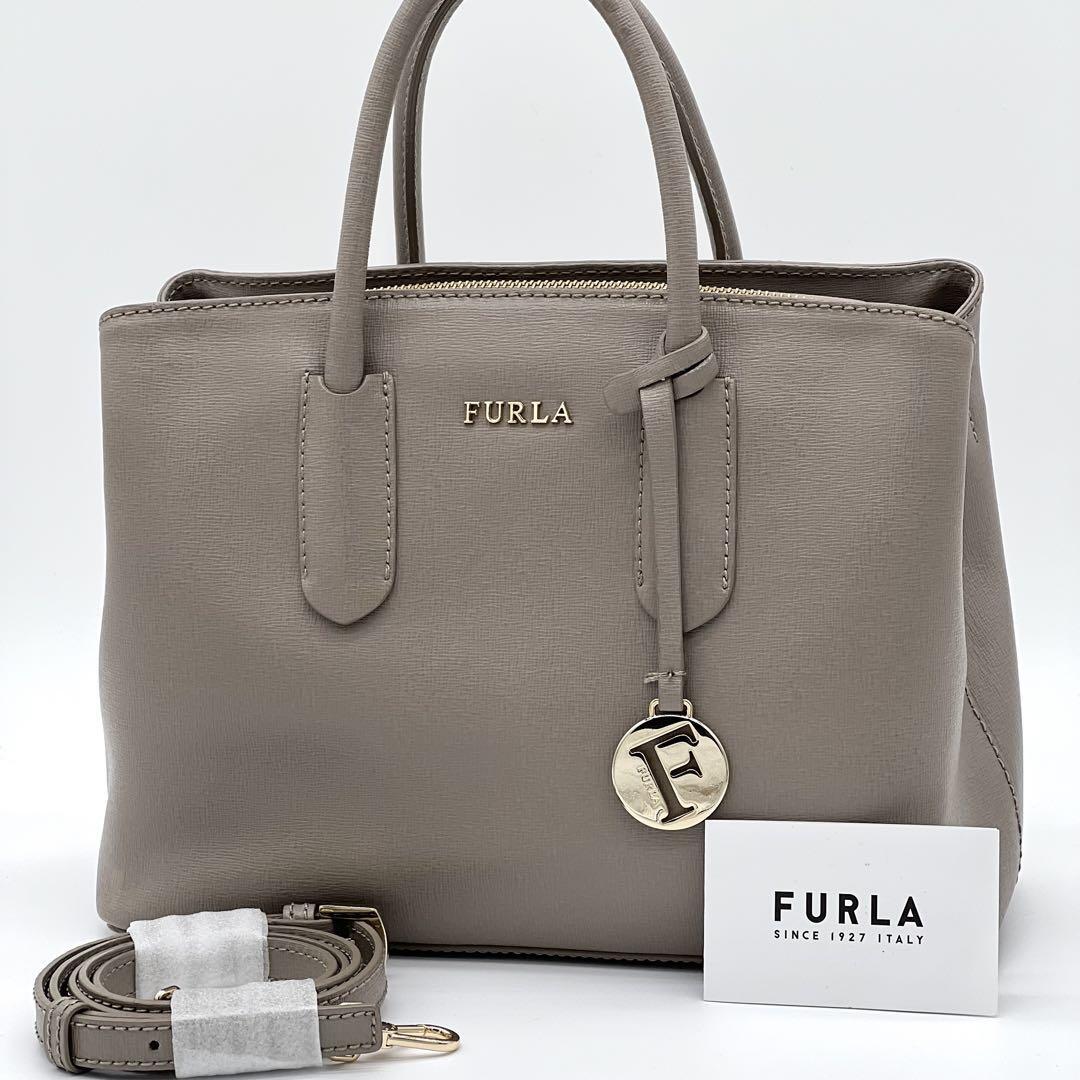 - 【美品】FURLA フルラ TESSA テッサ ハンドバッグ 2way ショルダーバッグ 斜めがけ タウンユース フォーマル レディース グレー EJ000409