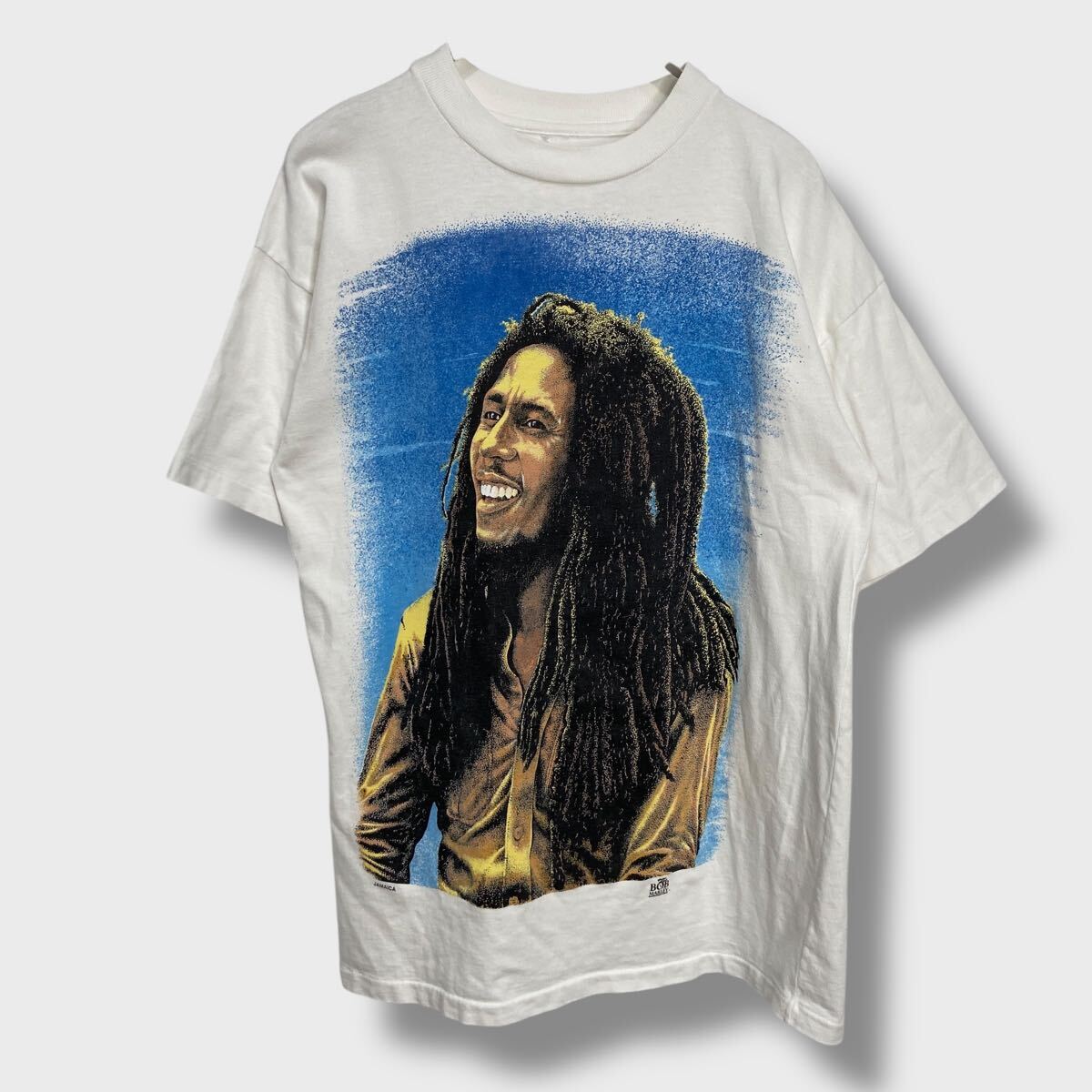 - 送料無料☆90s☆ボブマーリー☆両面プリントTシャツ☆肖像画Tシャツ☆ホワイト☆M相当