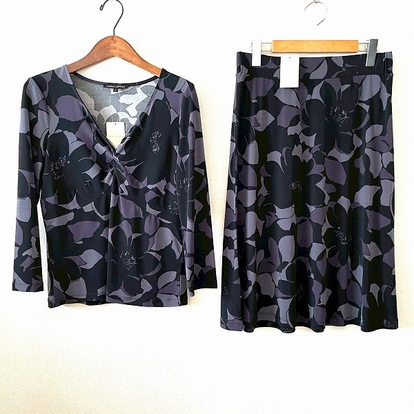 - #anc ローラアシュレイ LAURAASHLEY セットアップ ツーピース 黒 紫 グレー 花柄 タグ付き レディース [941284]