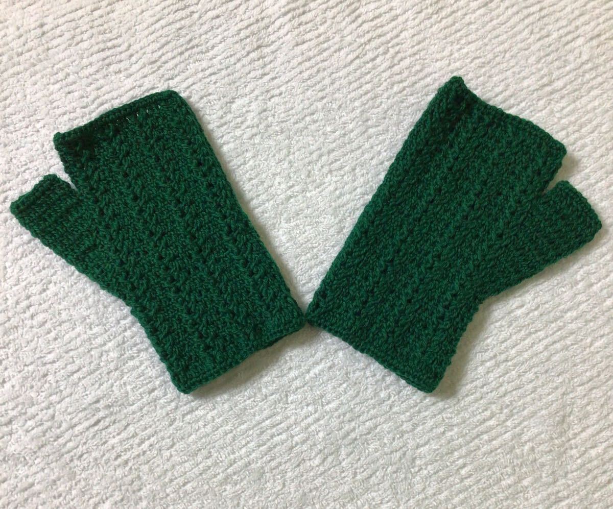 - 【編ハ-8】手編みのハンドウォーマー 指先なしのミトンタイプ スマホ、パソコン操作、読書等作業がしやすく便利♪ 左右どちらでもOK!