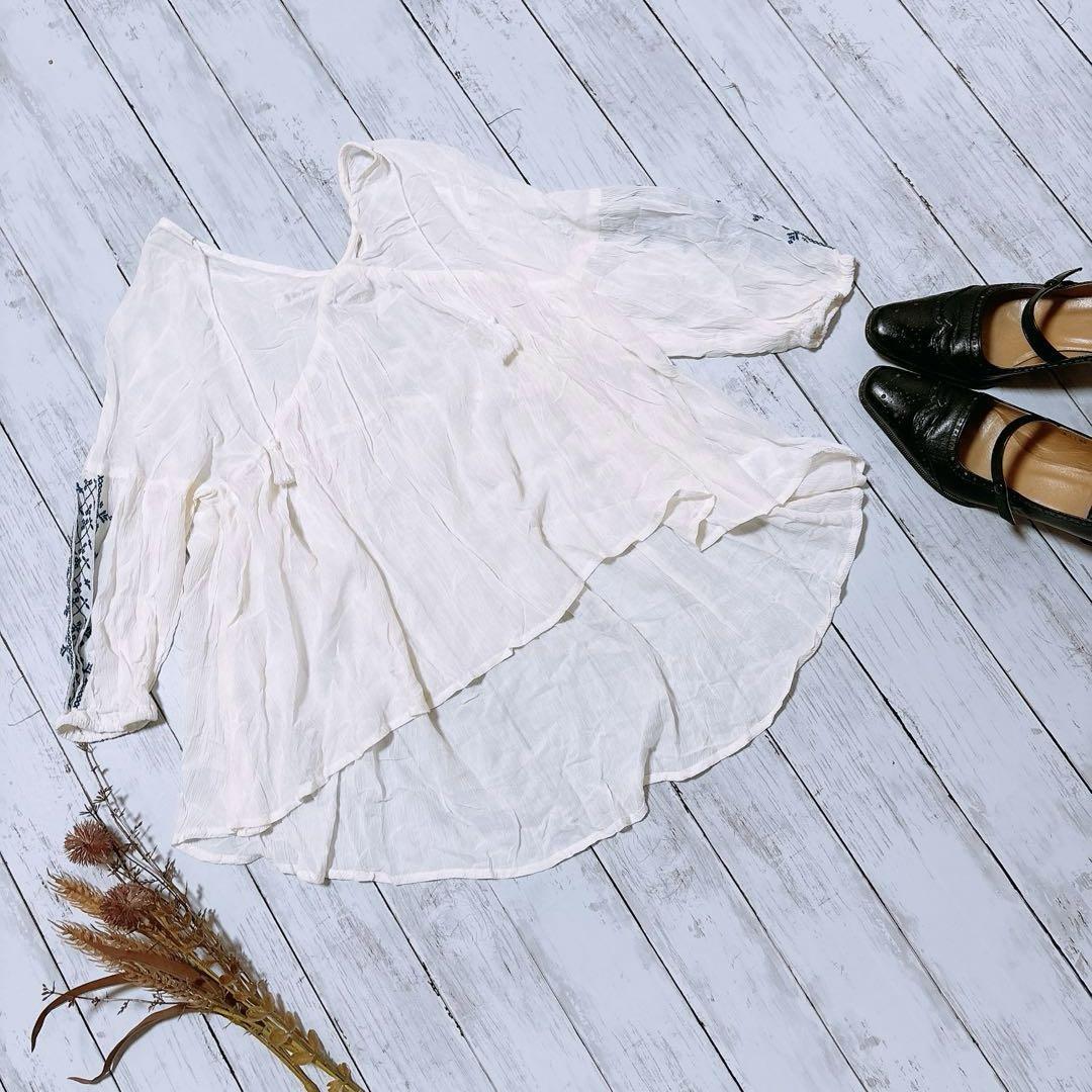 - Bou Jeloud 刺繍入りシフォンブラウス 38 フレア ブージュルード