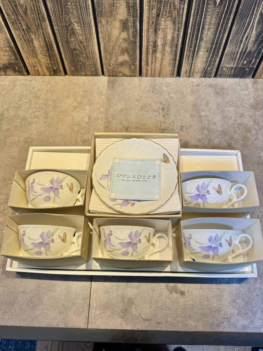 - 【maple】 ロマンスひととき 花柄 湯飲み 5客 カップ&ソーサー 茶碗 皿 陶器 食器|未使用