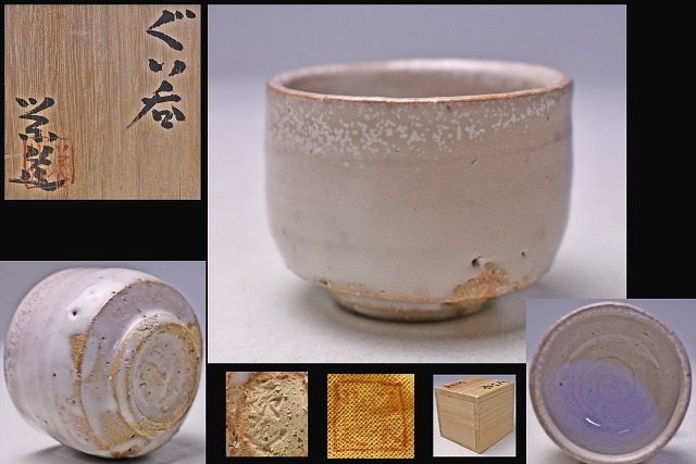 > 三輪栄造 ★ 萩ぐい呑 ★ 共箱 ★ 萩焼 ★ ぐい呑 ★ お猪口 ★ 人間国宝 三輪休雪 の子息 ★ 三輪龍作 ★ 三輪和彦 ★ 酒器