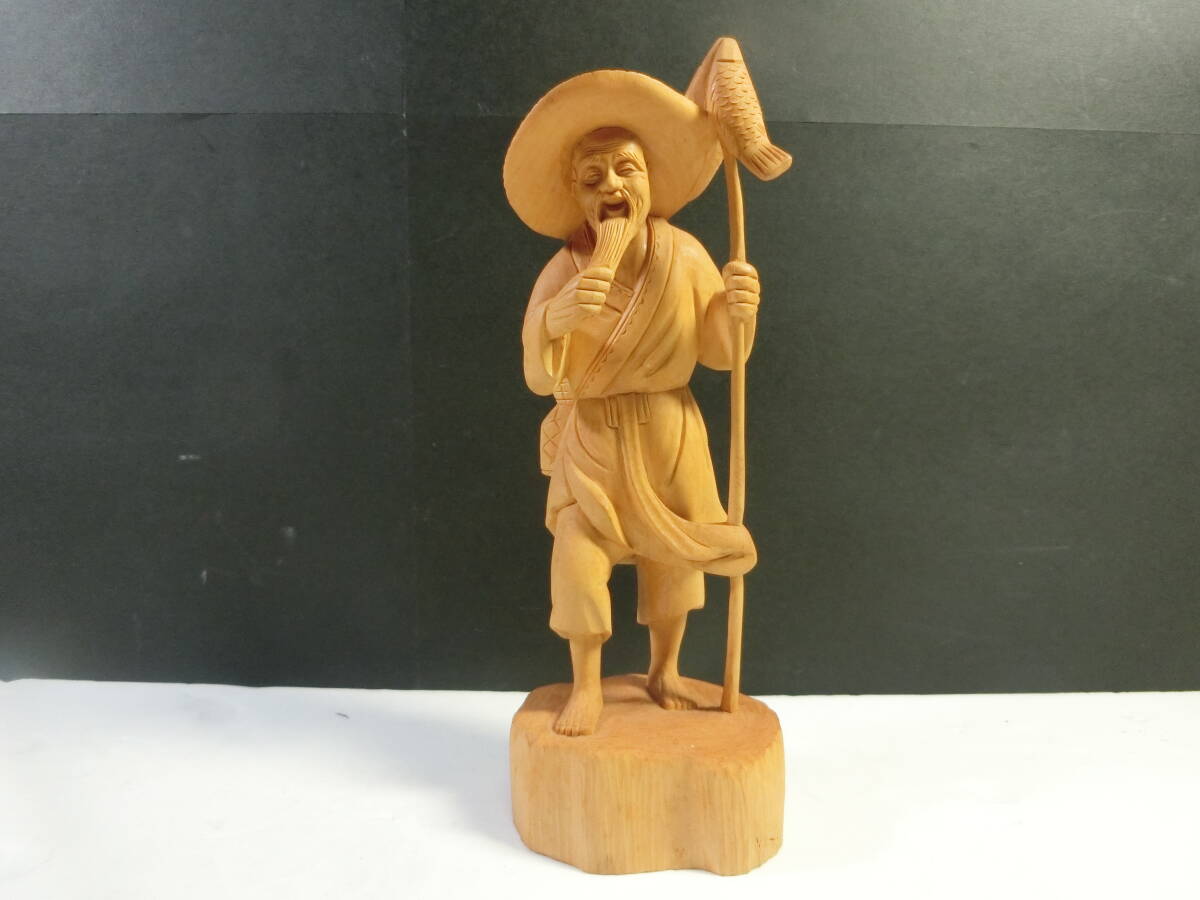 - ■木彫風 置物 人形 細密細工 老人 魚 アンティーク 木彫り 釣り 人形