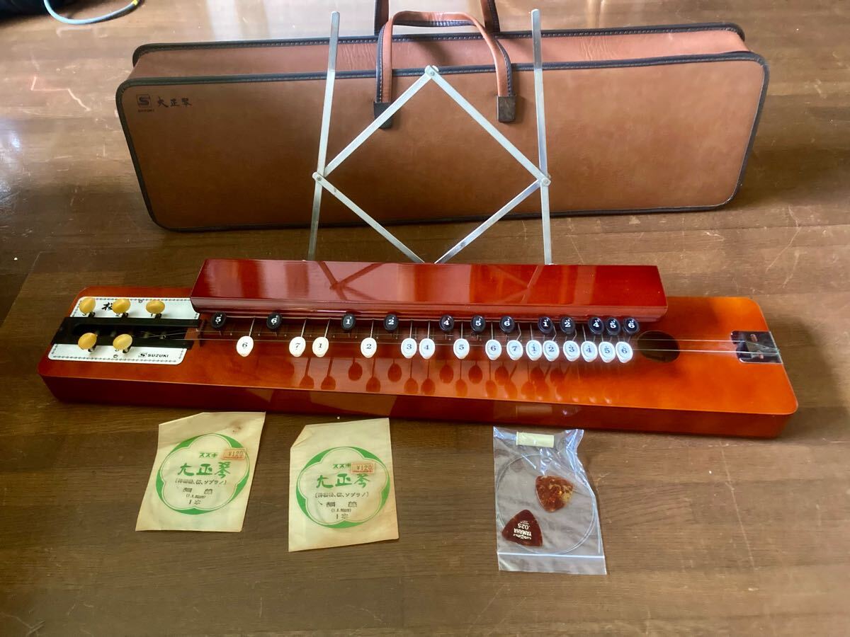 - 昭和の楽器 スズキ大正 譜面台、弦3本、ピック2枚
