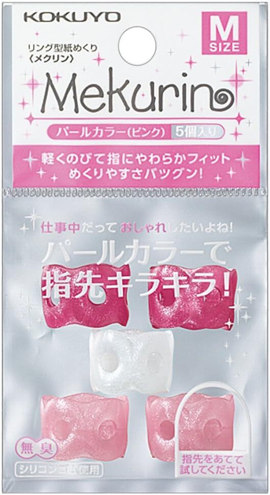 > @【即決】★紙めくり コクヨ★メクリン ピンク ラメ入り シリコンゴム パール Mサイズ 5個入 リング型 穴あきタイプ 事務用品/ メク-P21P