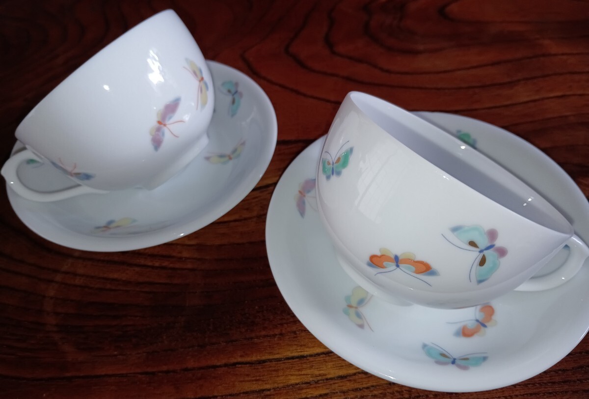 - 廃番希少(美品)!深川製磁〜「蝶」カップ&ソーサー・ペア