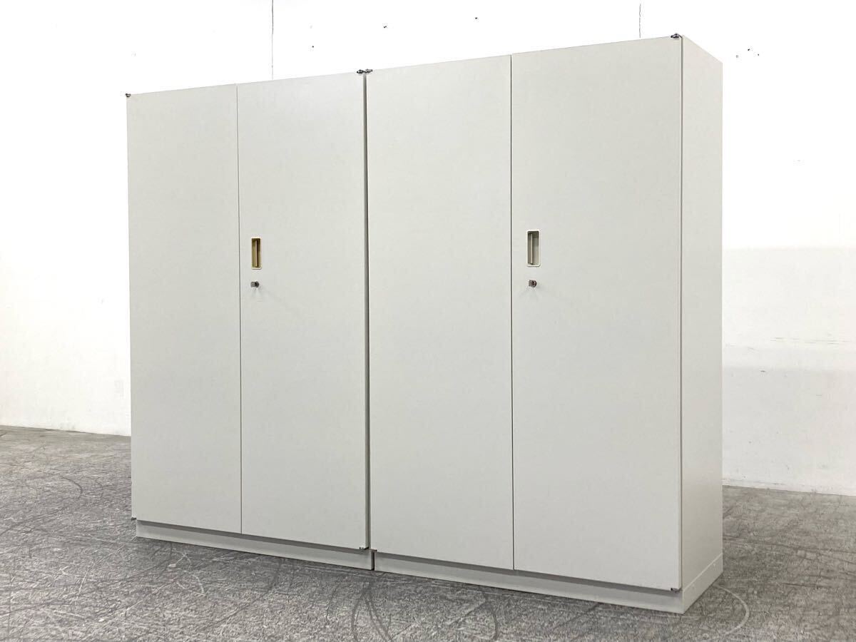 - ★rrst162★ ITOKI/イトーキ シンライン 両開き書庫 2台セット 鍵付き ホワイト 書類収納庫 整理棚 キャビネット オフィス