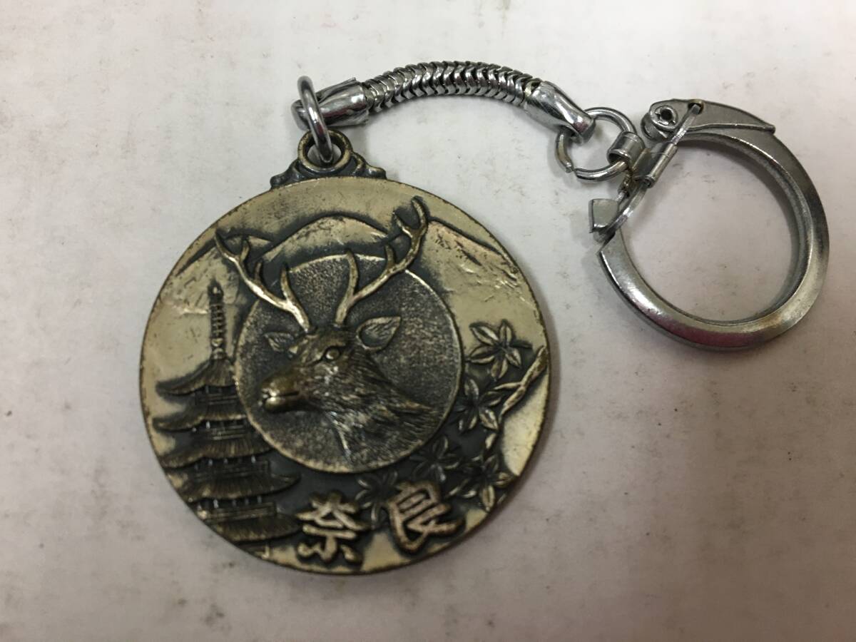 - 奈良公園「奈良 鹿 安部仲麻呂 」キーホルダー 奈良県 五重の塔 ご当地 観光 土産物 運気上昇 縁起物 (白い恋人缶保管)