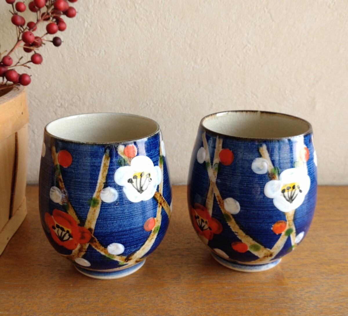 - 紅白梅 湯飲み 2客セット ペア 湯呑み