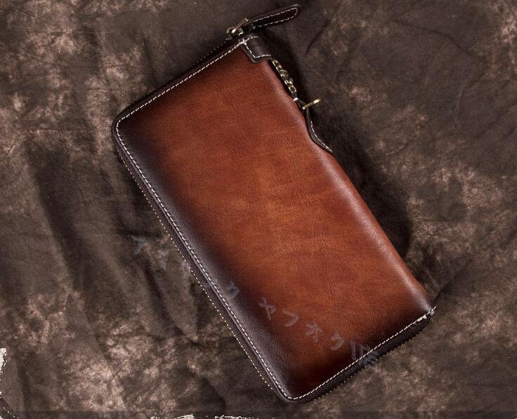 - 牛革 長財布 メンズ 財布 レザー 本革 ビジネス 紳士 小銭入れ カード収納 アニマルパターン ブラウン お色選択可