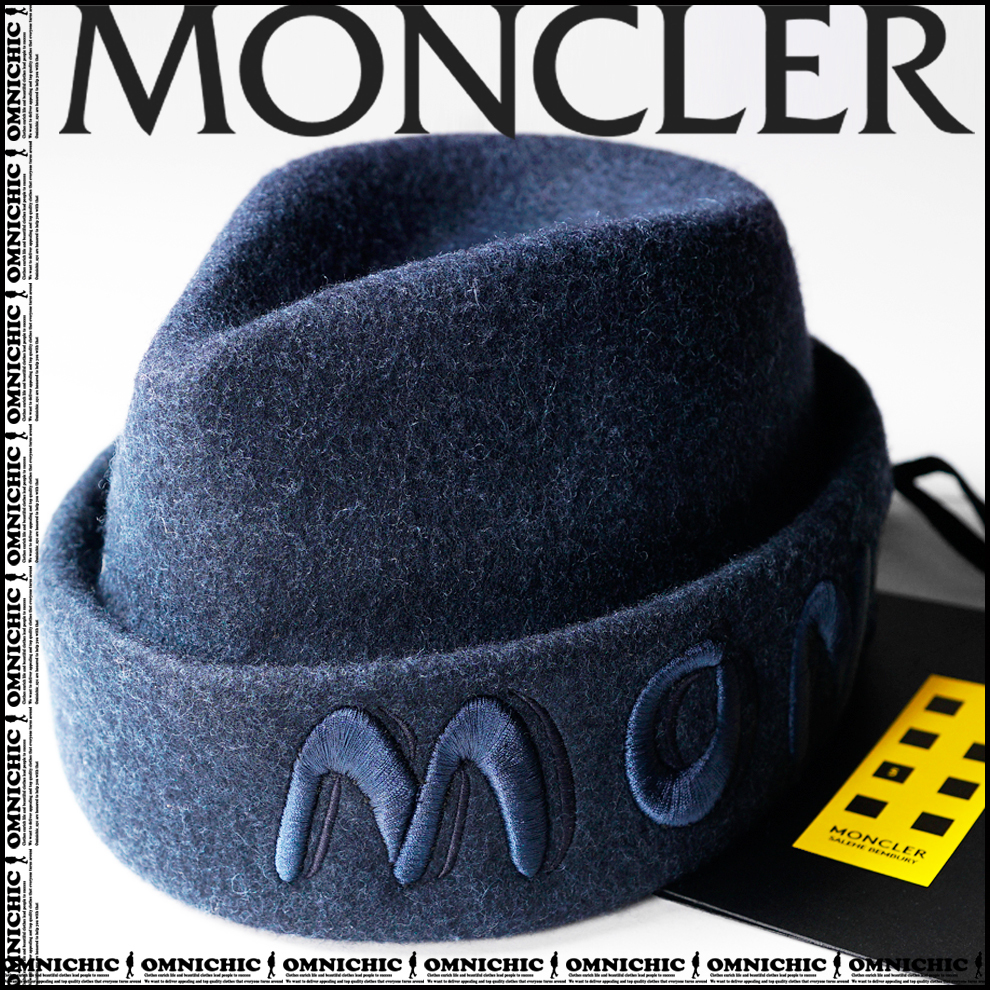 > 目を引くビックロゴ■新品正規品【MONCLER × SALEHE BEMBURY】モンクレール × サレヘ・ベンバリーコラボネイビーウールフェルトハット59