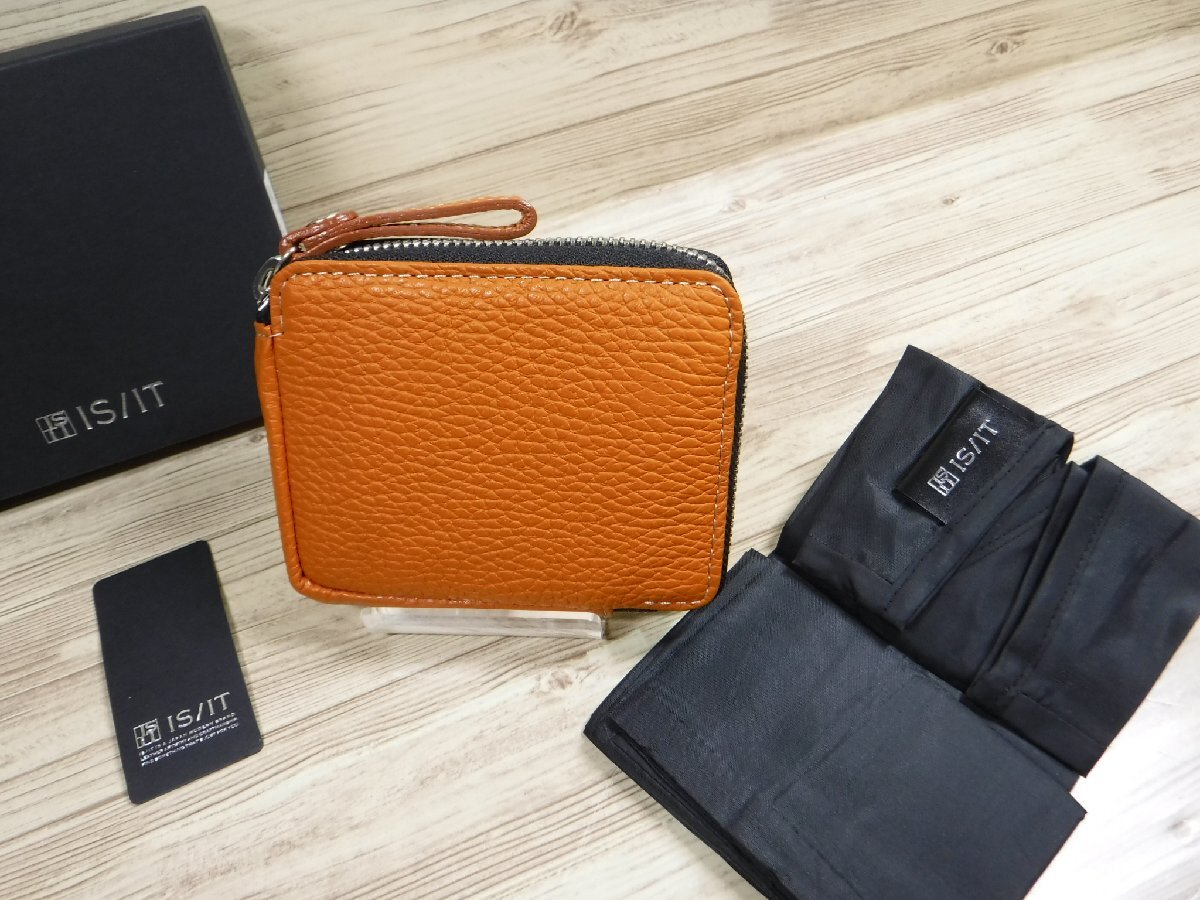> QQ161 イズイット 新品 ZIP コンパクト財布 牛革 エコバッグ付き IS/IT 967001 フジタカ製造 イケテイ製 ミニ財布 定価8800円 オレンジ