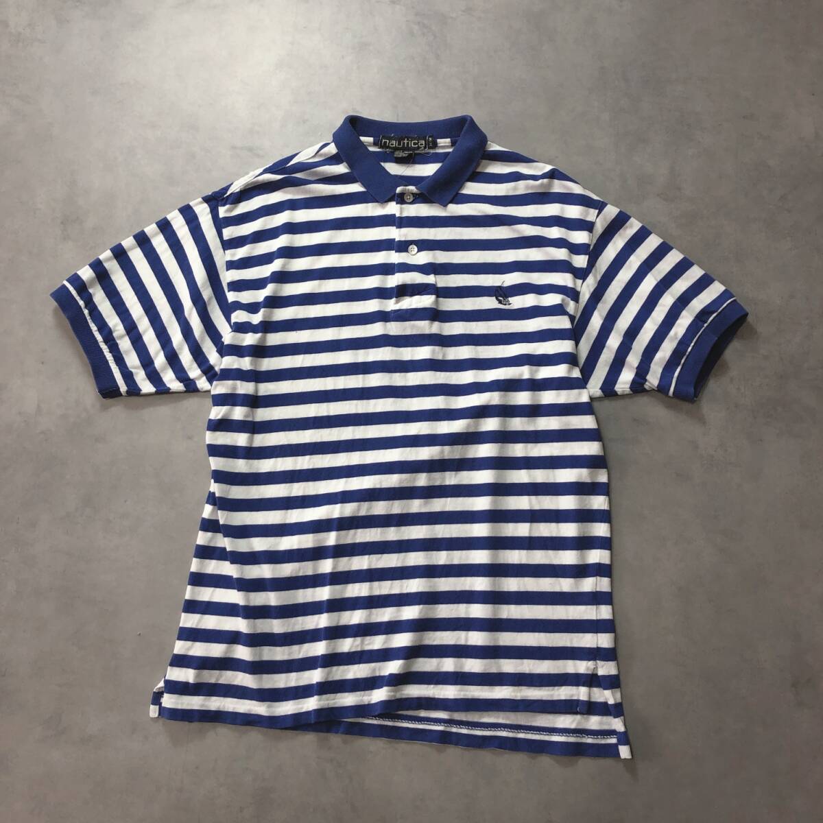 - GQ2144◇nautica : 90’s ストライプポロシャツ◇青白 ノーティカ