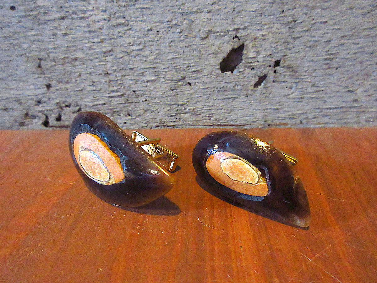 > ビンテージ60’s●アニマルホーンカフリンクス●250424k3-otacc 1960sアクセサリーカフス動物角骨ボタン