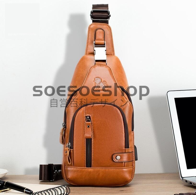 - 新品推薦★本革 ボディバッグ メンズ レザー 耐久 ワンショルダーバッグ 牛革 ショルダーバッグ 斜めがけ鞄 カジュアル鞄 茶色