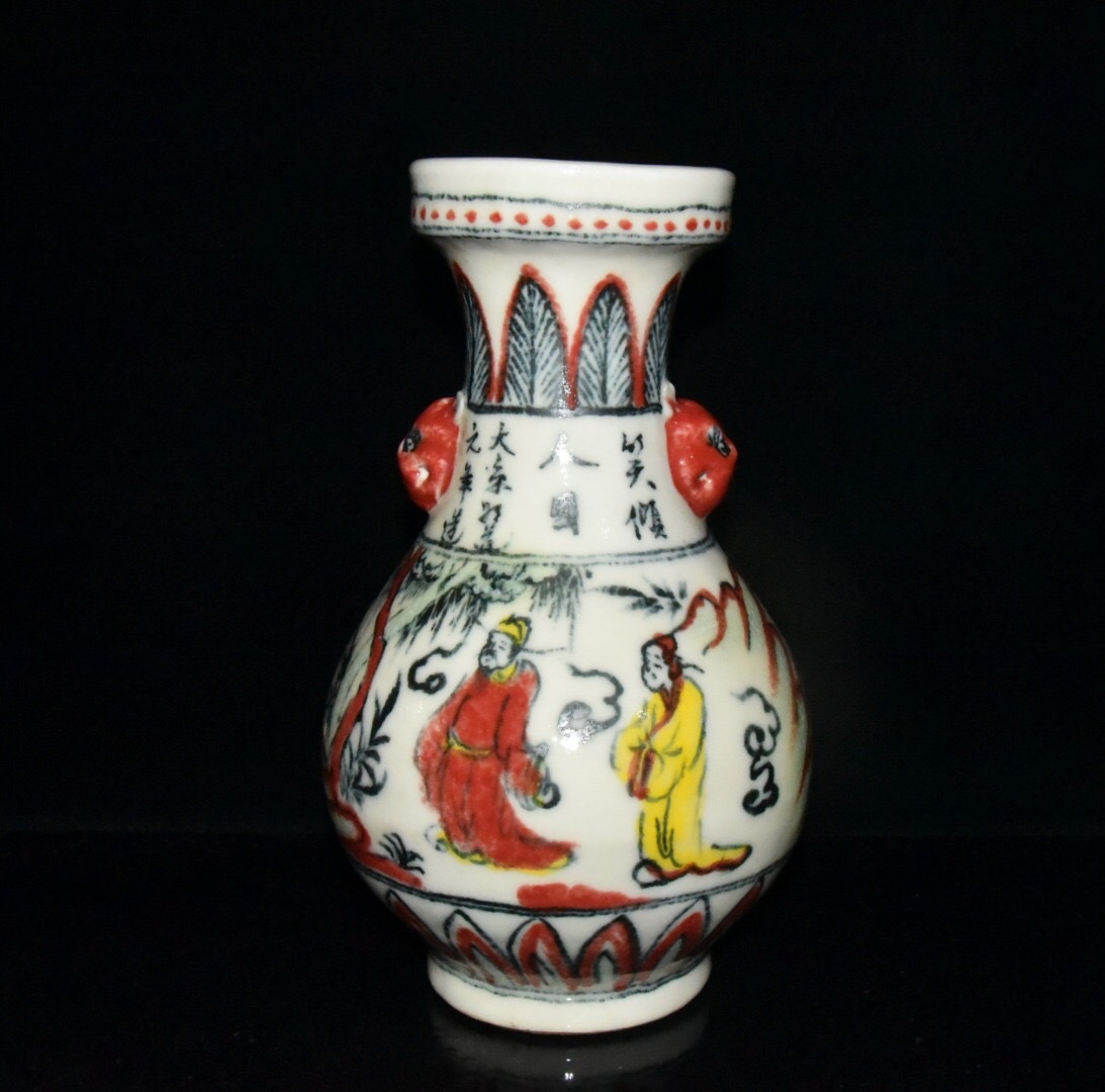 - 【超珍館蔵】宋 古陶瓷品 五彩 人物故事紋 雙耳瓶 置物 古賞物 古美術品 稀少珍蔵品