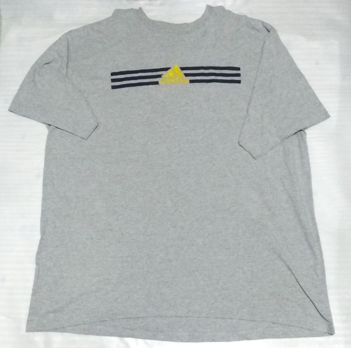- ☆adidas.com TALLサイズ2XLT半袖TシャツGLAYグレイTEE紺色ネイビー3ストライプスPERFORMANCEロゴ黄色オレンジ スポーツ ティー アディダス