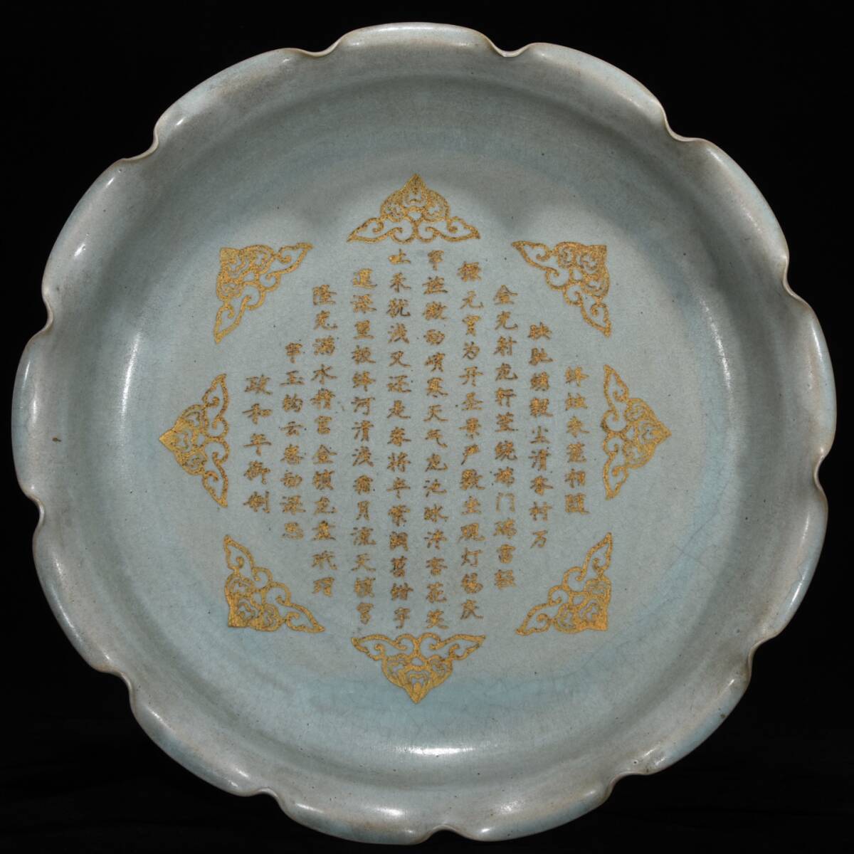 - 宋時代 古陶磁器 汝窯 銘文 花口洗 描金 筆洗 文房具 宮廷款 供御 極細工 古賞物 古美味 東洋彫刻 時代物 骨董 中国古美術