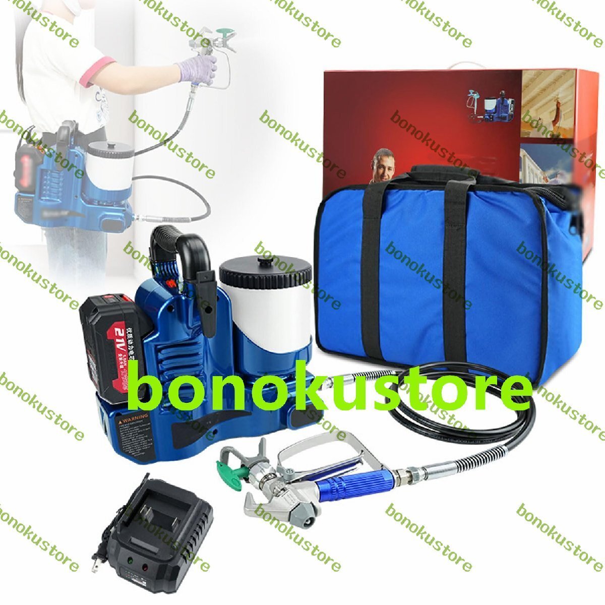 - コードレス高圧ペイントスプレー 1.2L 電動エアレススプレー機 6速度調整付き 21V/5A リチウムバッテリー 1.1l/分 家具 フェンス 壁