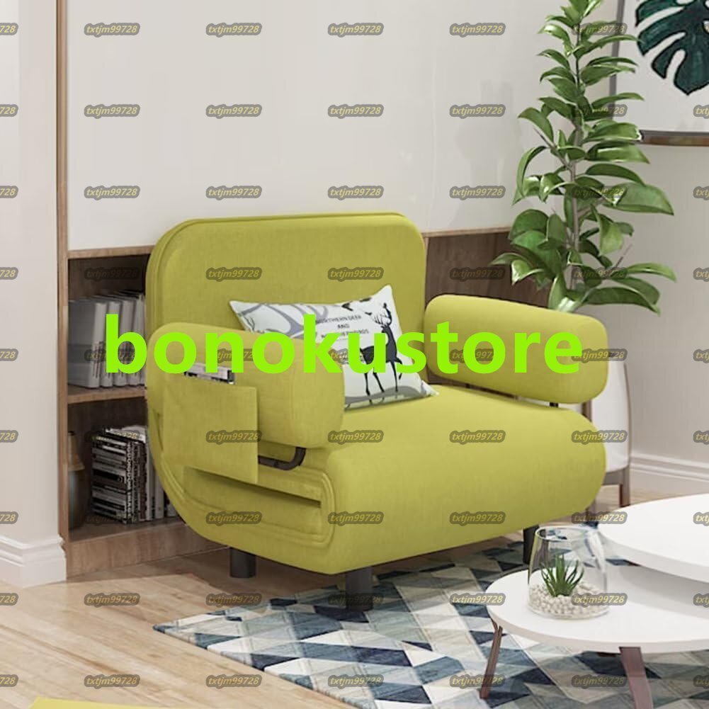 - ソファーベッド リクライニングチェアー 折りたたみソファベッド クッション付 1人掛け 座椅子 組立簡単(グリーン)