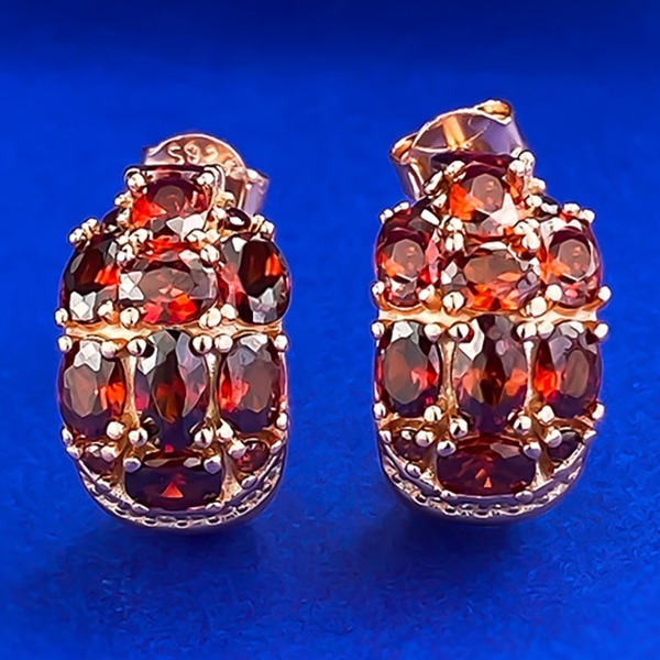 > 女性のための925シルバー製ガーネットスタッドピアス、金メッキ、競売終了4日前までに最初に入札すると開始価格で購入できます Kn0cb