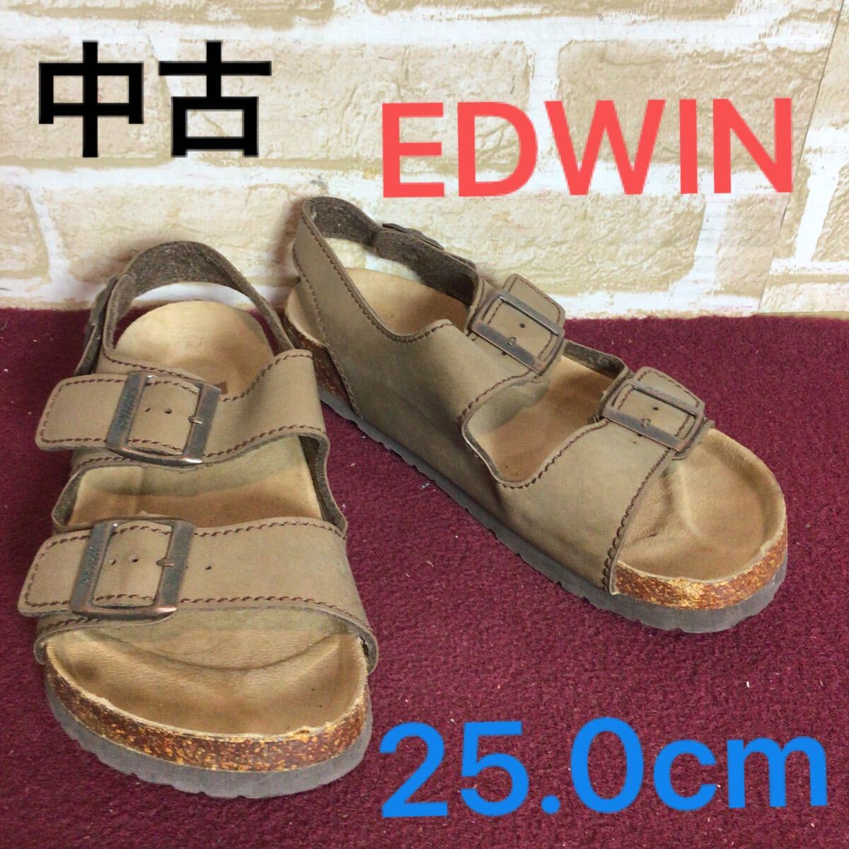 - 【売り切り!送料無料!】A-343 EDWIN!サンダル!ブラウン!25.0cm!ベルトデザイン!かかとベルトあり!レジャー!夏!中古!