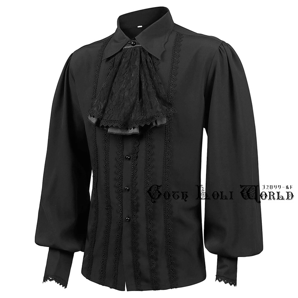 - WY-1246CE-XL レースシャボ付ロングスリーブ ブラウス メンズ ゴスロリワールド ゴシック パンク ロック ロリィタ ビジュアル系 V系