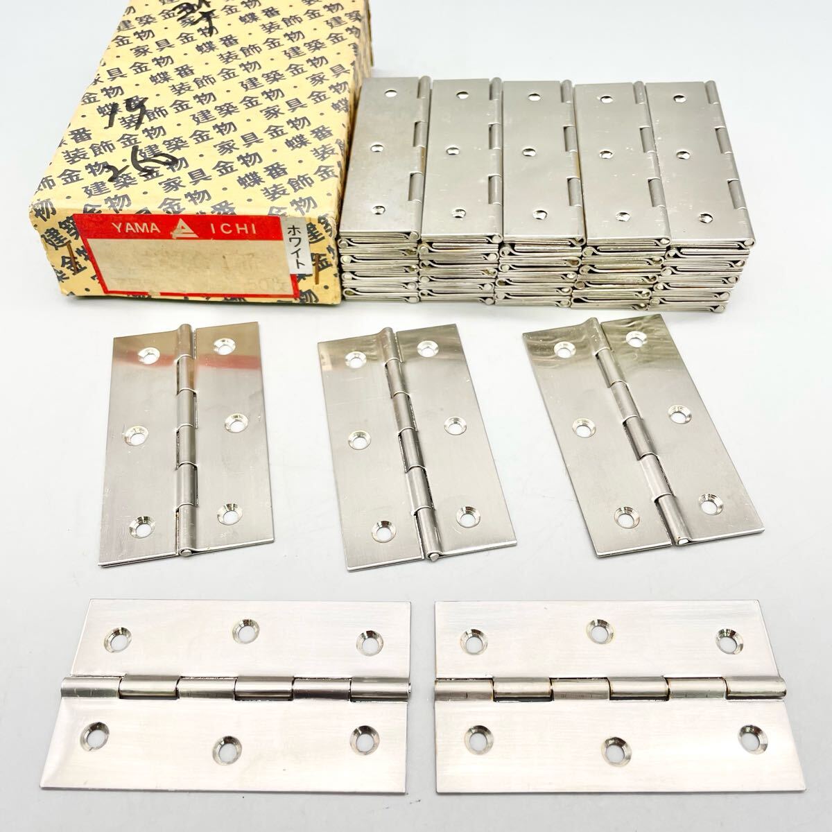 > [新品 未使用] YAMAICHI 山一 真鍮製 二枚合 丁番 75mm 大量 50枚 蝶番 ヒンジ ドア 扉 真中 ホワイト シルバー 金物屋 在庫 まとめ売り