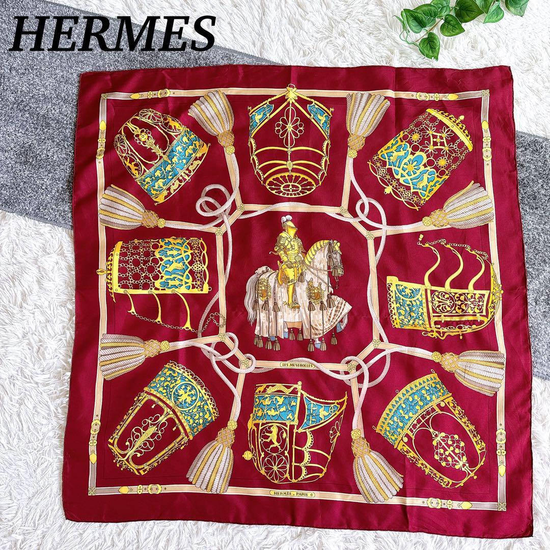 - HERMES エルメス カレ90スカーフ LES MUSEROLLES 鼻革 オールド 総柄 シルク