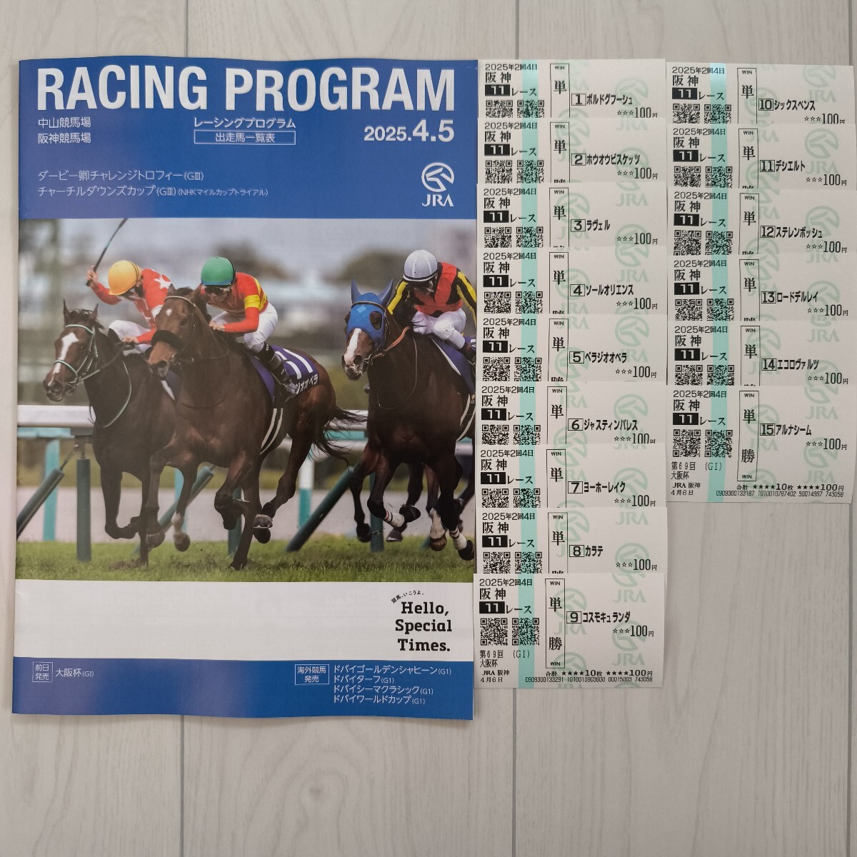 - 【2025.4.6 大阪杯】出走全頭 現地単勝馬券&レーシングプログラム☆優勝ベラジオオペラ☆JRA 匿名配送