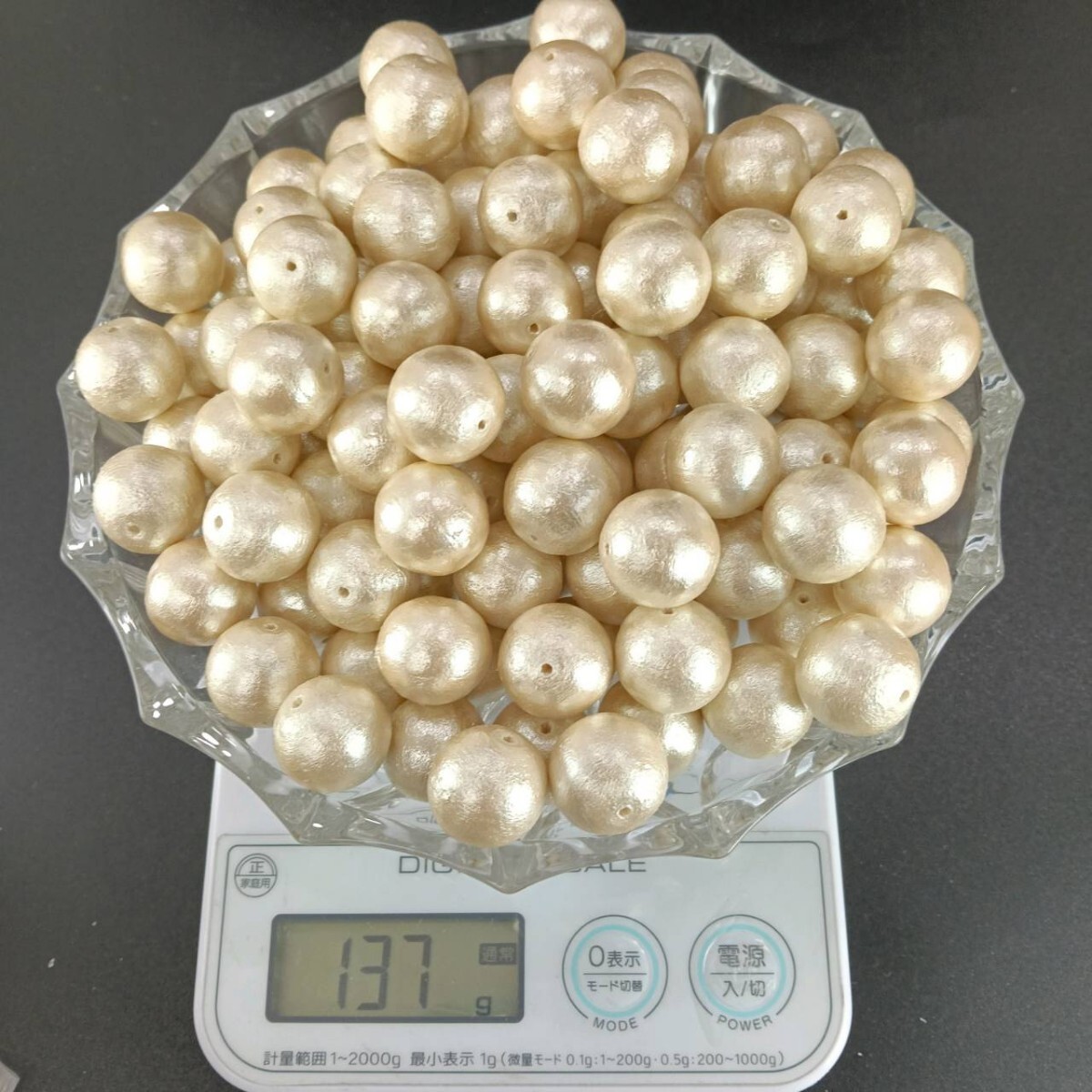 > L162☆未使用 約130個 大量 コットンパール ビーズ ラウンド 約137g 18mm シャンパンゴールド ヴィンテージ ハンドメイド ネックレス S-229