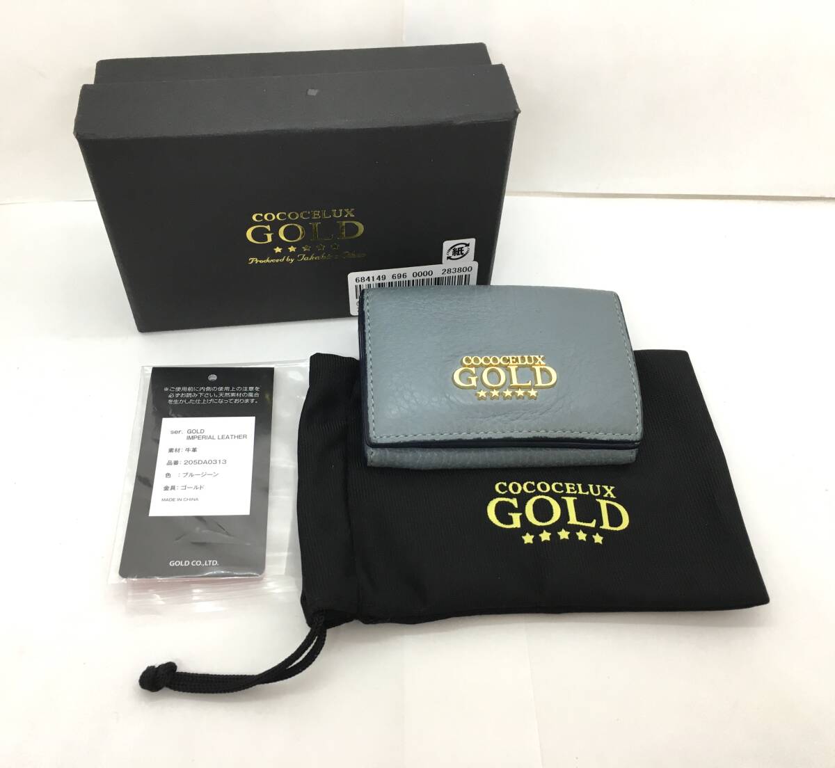 - COCOCELUX GOLD ココセリュックス ゴールド 三つ折り 財布 牛革 札入れ 小銭入れ カード入れ×3 ブルー