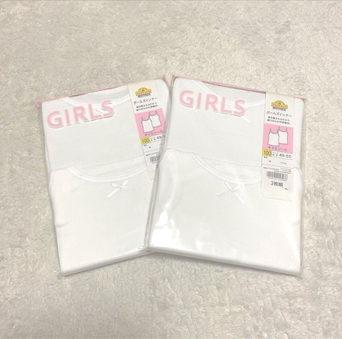 - 送料無料★新品★イオン購入★キャミソール肌着2枚組×2パック★100★白★綿100%★女の子キッズ子供幼稚園保育園下着洗い替え清潔感
