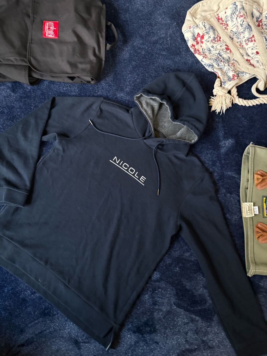 - 超美品 人気アイテム ハイダウェイ ニコル HIDEAWAYS NICOLE ダブルフェイス プルオーバー パーカ フーディ size46(M相当) ネイビー系