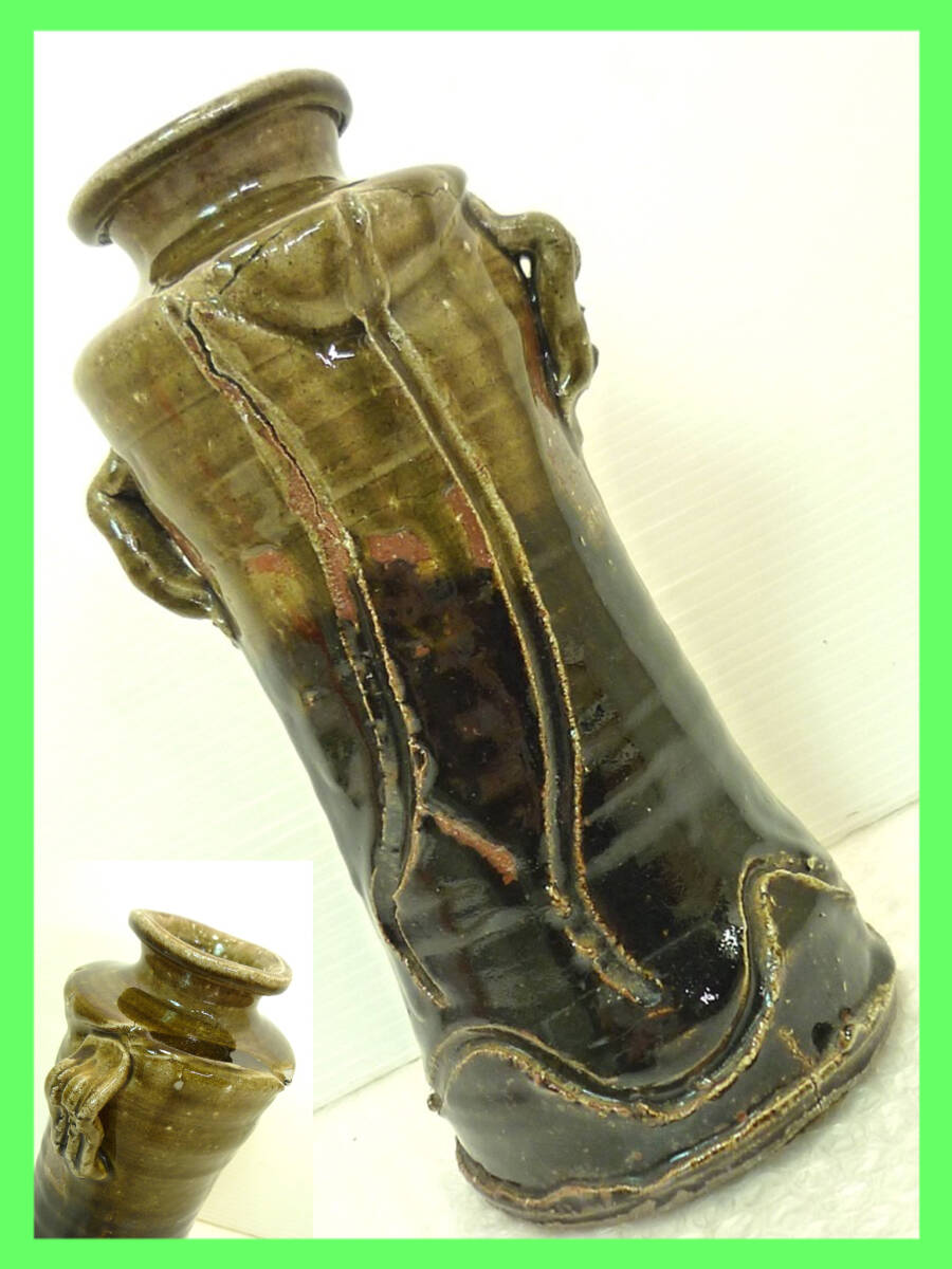 - 旧家蔵出 美濃焼 杓立 飾火箸立て 柄杓立て 陶器 骨董 陶芸 美術品 茶道具 優美 上質 高級 風情 趣 日本伝統 時代 美品 華道 必見 お買得