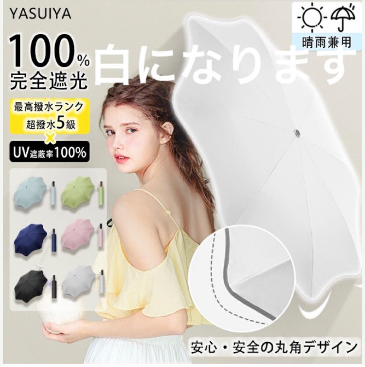 - 日傘 完全遮光 UPF50+ 自動開閉 反射テープ搭載 折りたたみ傘 UVカット