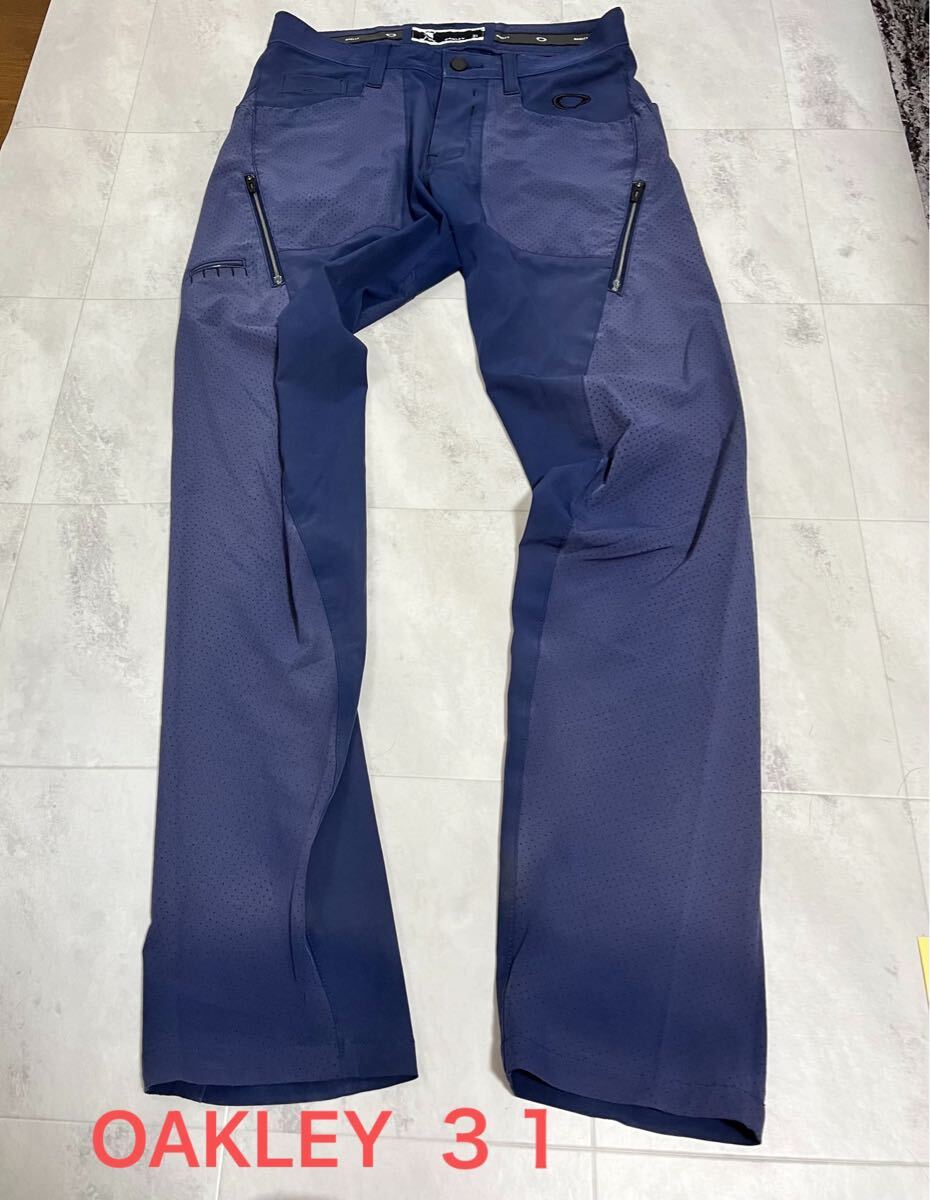 > OAKLEY/オークリー ナイロンパンツ 31インチ 紺 ネイビー 色褪せあり ロゴ刺しゅう パンツ