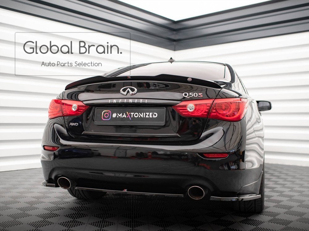 - 日産 スカイライン V37 Q50 セダン リア トランク スポイラー / ウィング ディフューザー エクステンション トリム カバー エアロ