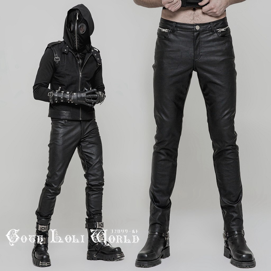 - ゴスロリワールド OK-321XCM-BK-L サイドジッパー フェイクレザー スリムパンツ メンズ ゴシック パンク ロック ビジュアル系 V系