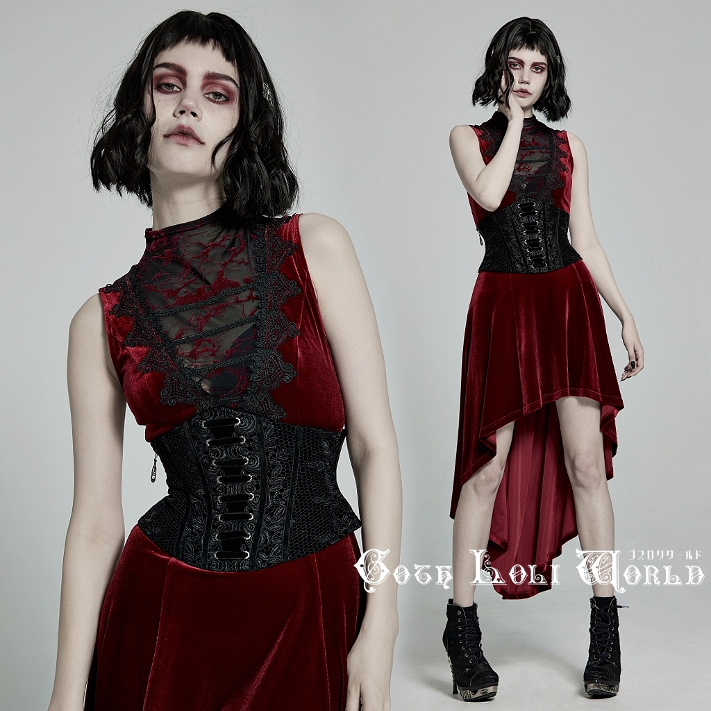 - WS-426YDF-BK-XS-S サイドファスナーレースデザイン コルセット 黒赤色 レディース ゴスロリワールド ゴシック パンク ビジュアル系 V系