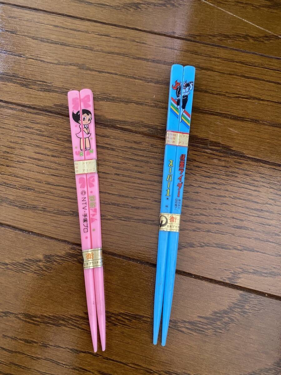 - 当時物 未使用 箸 2個セット 『鉄腕アトム』『仮面ライダースーパー1』 汚れあり KK5010
