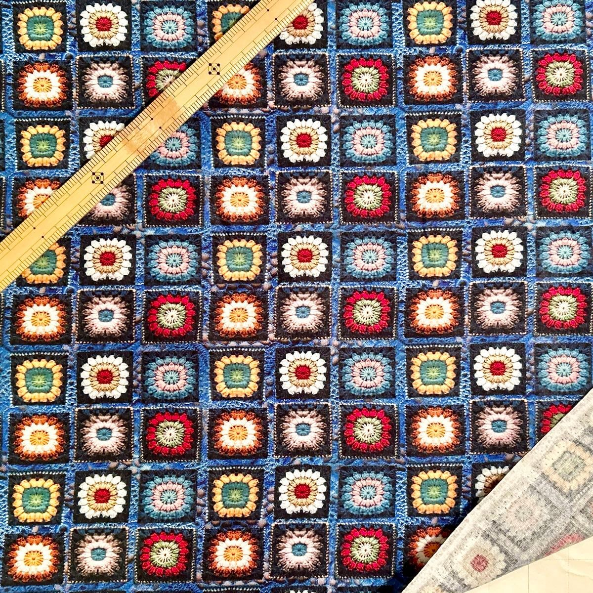 - D60 3D立体プリント カラフル コットン100%生地 おばあちゃん柄 ハギレ 生地 ハンドメイド 輸入生地