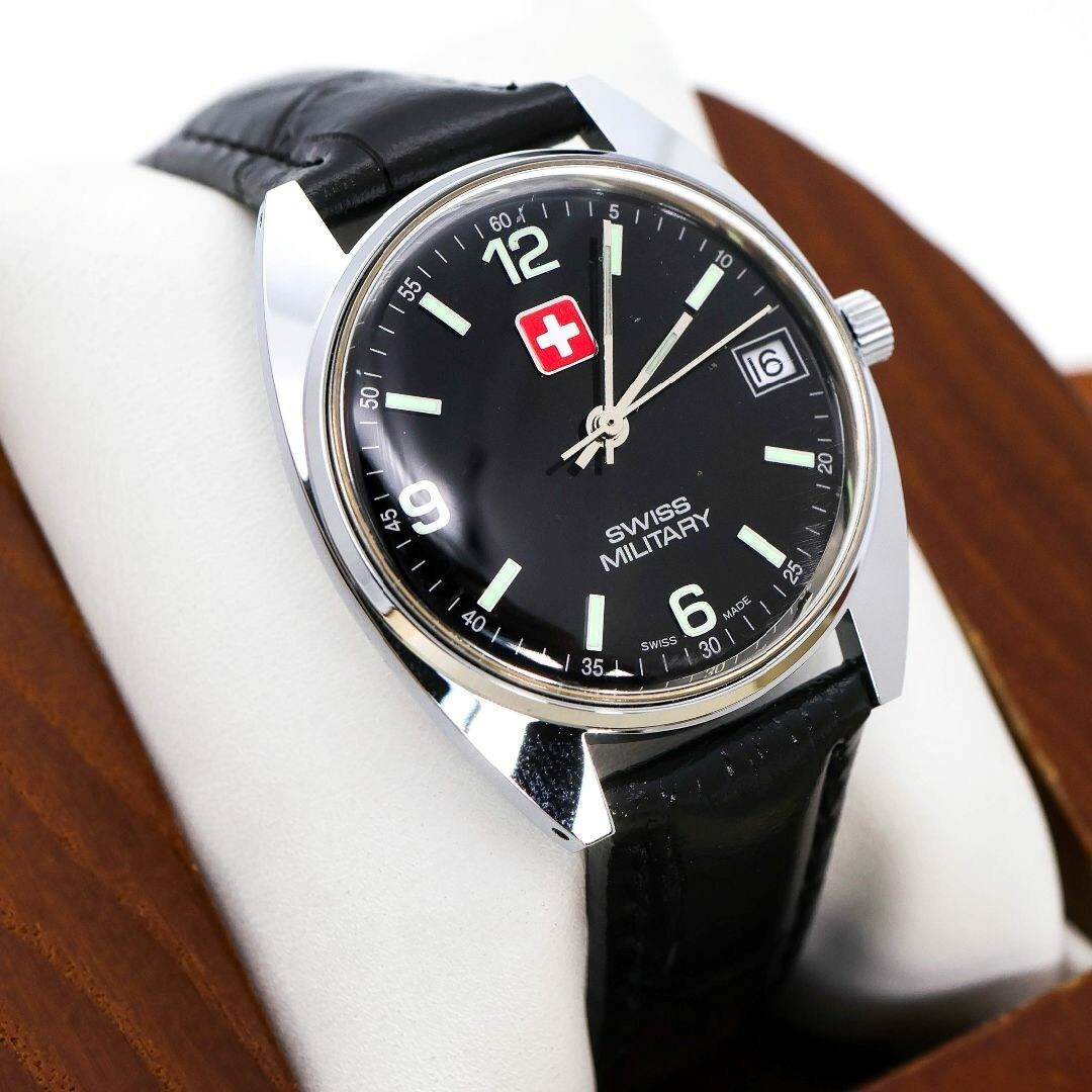 - 稼働 SWISS MILITARY 腕時計 黒文字盤 デイト ボーイズ 1488