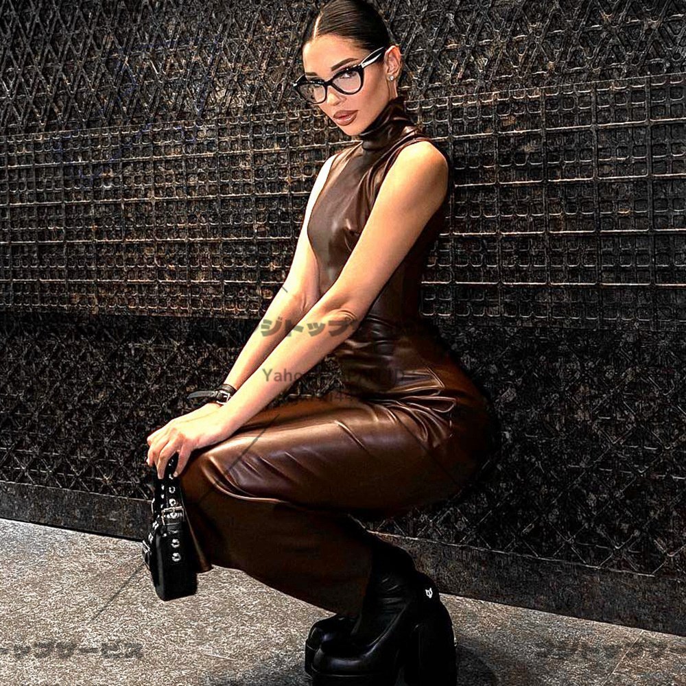 > 新入荷未使用 ワンピースレディースきれいめ 上質 sexy 着心地抜群 20代30代40代 タイト 合皮 ロング丈 コーヒーサイズ選択可