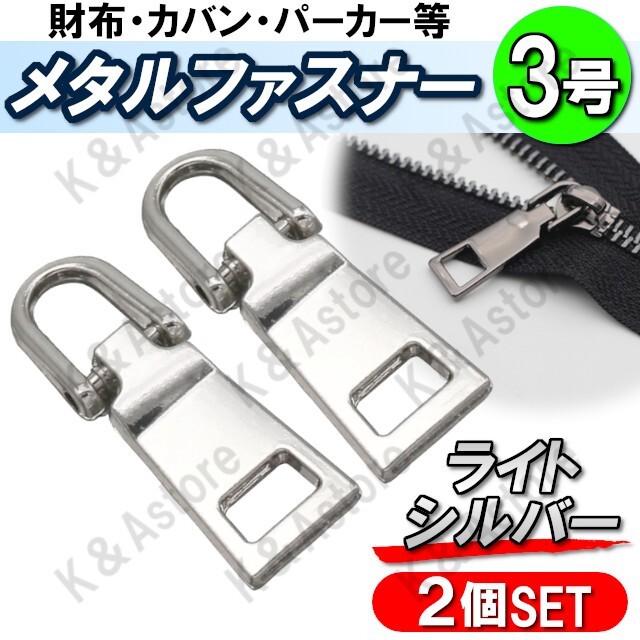 > ファスナー 引き手 2個セット チャック 持ち手 取っ手 引手 ジッパー ファスナートップ 修理 交換 取替 財布 ライトシルバー 銀 3号