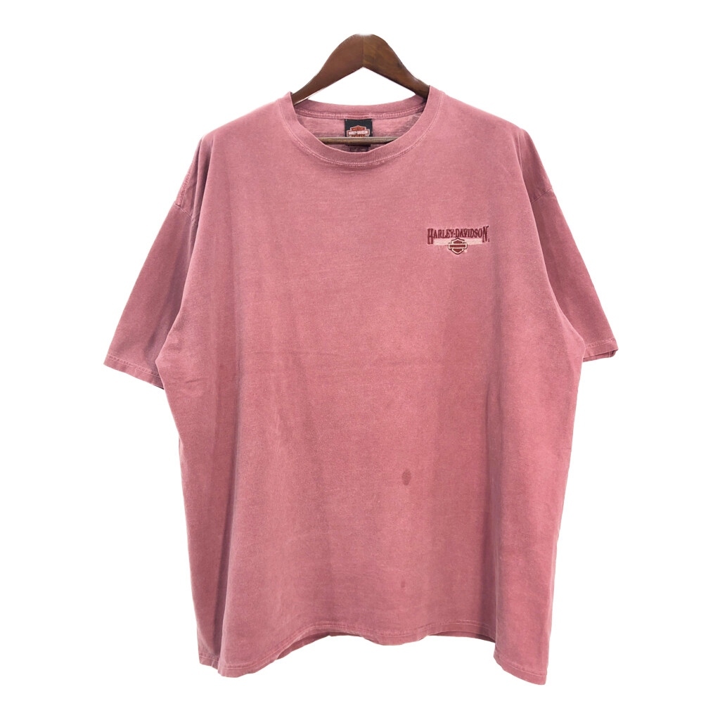 > HARLEY DAVIDSON ハーレーダビッドソン 半袖Tシャツ 大きいサイズ モーターサイクル 後染め ピンク(メンズ 2X-LARGE)中古 古着 U0011